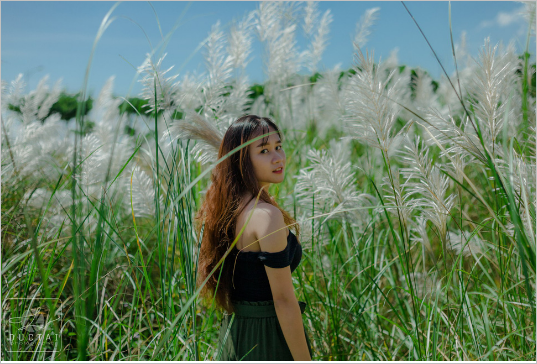 Hoặc có thể chọn cách đứng lấp ló nửa người ẩn hiện trong rừng cỏ lau, đem lại hơi hướng cổ tích. Cách này có thể áp dụng chụp theo phong cách ma mị, thần bí nhé, lúc này chọn váy trắng đơn sắc và cần nhiếp ảnh gia chỉnh sáng là bạn sẽ có bức hình siêu ấn tượng rồi.