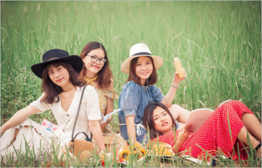 Các cô gái rất thích tạo dáng theo phong cách picnic bởi những bức ảnh này thường có background sống động, chỉ cần đủ “đồ nghề” để trang trí (giỏ trái cây, đĩa bánh ngọt, sách, thảm trải, mũ, đàn ukulele,… là các bạn đã có được những kiểu chụp hình nhóm cực kỳ đẹp và nghệ thuật rồi.