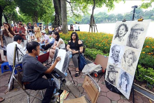 Vẽ chân dung tại phố đi bộ Hà Nội