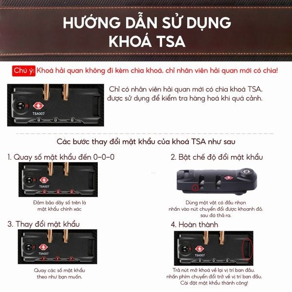Lưu ý, hãy đổi mật khẩu ngay sau đó để bảo đảm an toàn cho hành lý bên trong, ngoài ra mật khẩu mới gắn liền với những sự kiện của bản thân sẽ giúp bạn nhớ lâu hơn.