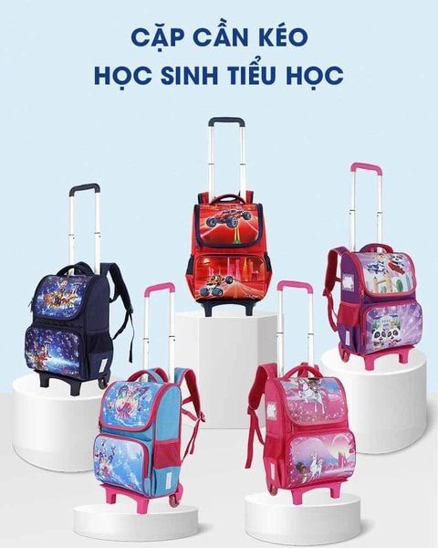 Đây là một mẫu balo phù hợp với các bé học sinh cấp 1. Mẫu balo được thiết kế có 1 tay cầm và bánh xe bên dưới để các bé kéo đi trong khi di chuyển. Ưu điểm của mẫu balo này là các bé sẽ không phải đeo balo vào lưng mà chỉ cần kéo đi, sẽ làm giảm trọng lượng khi tới trường cho các bé.